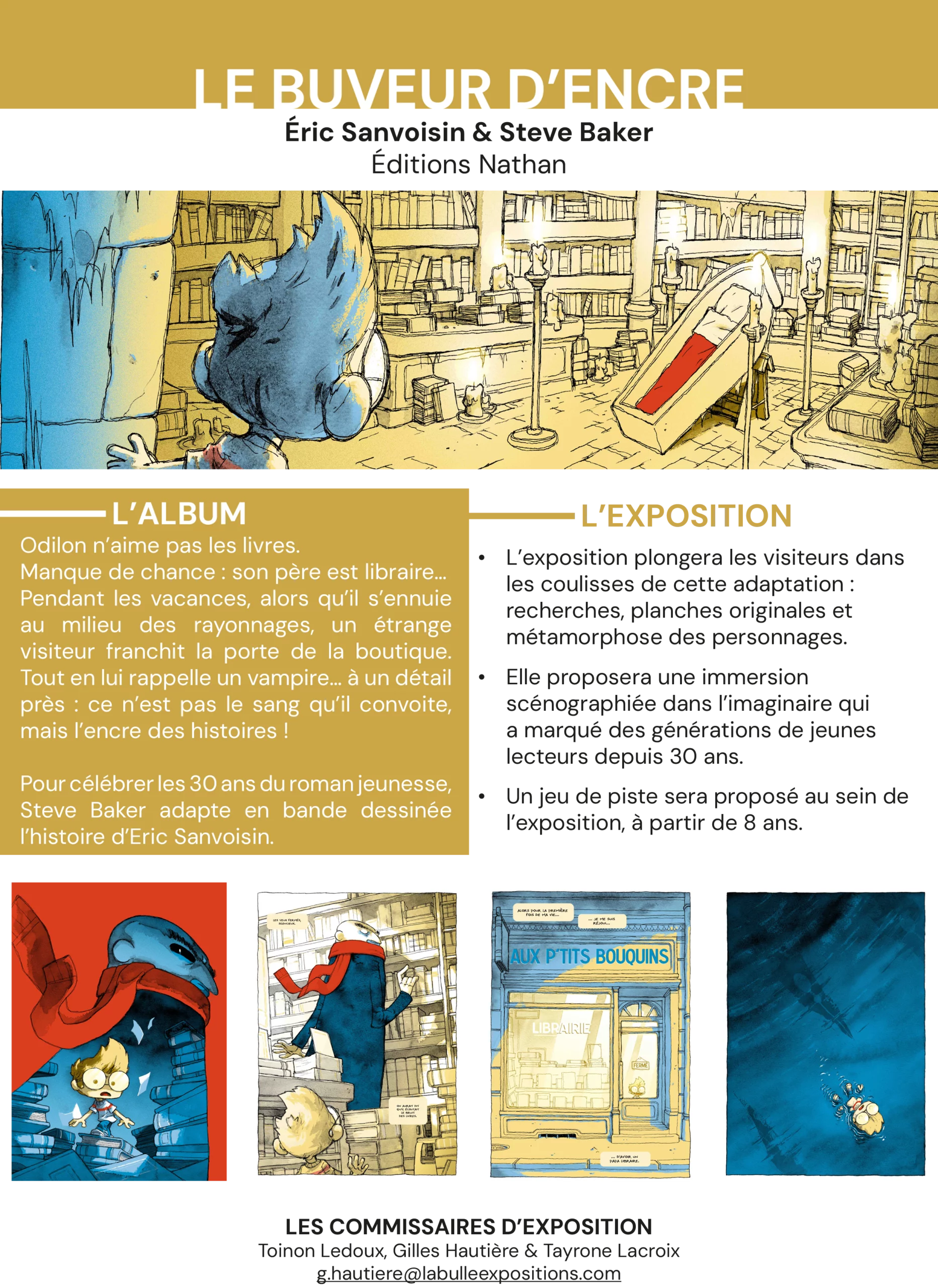 Exposition adaptée au jeune public qui plongera les visiteurs dans l’univers du roman d’Éric Sanvoisin adapté en bande dessinée par Steve Baker.