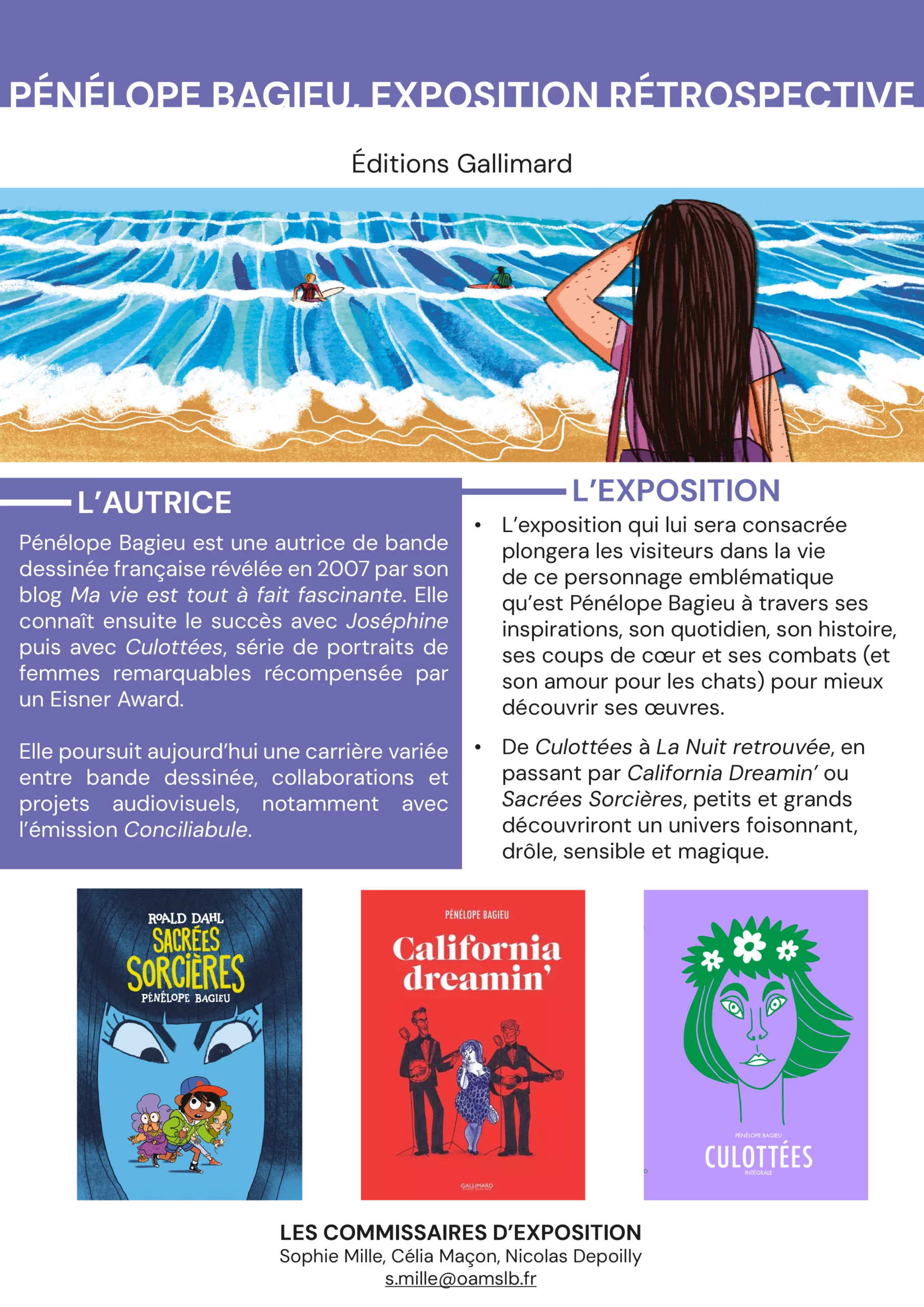 De son blog Ma vie est tout à fait fascinante à sa dernière bande dessinée avec Lola Lafon au scénario, La Nuit retrouvée, cette exposition sera consacrée à la carrière de Pénélope Bagieu